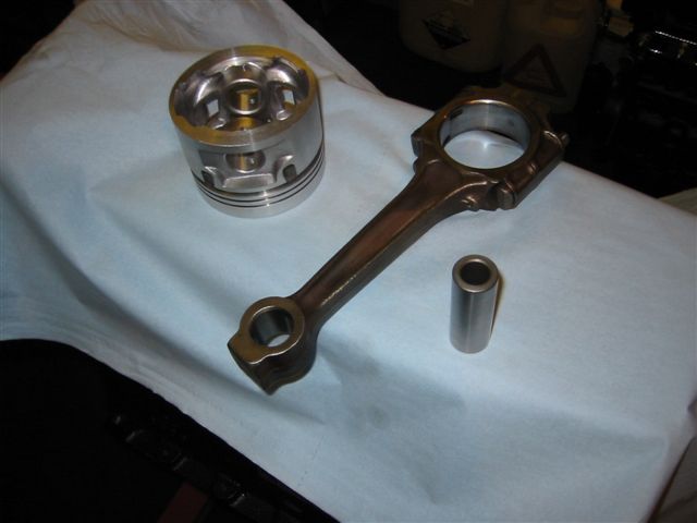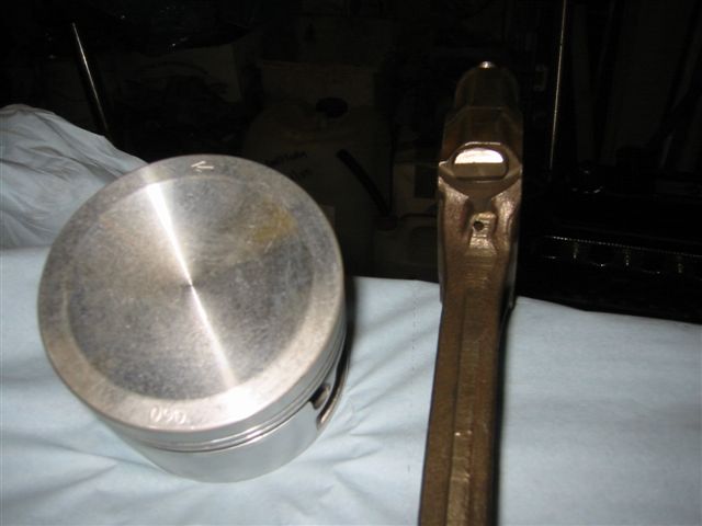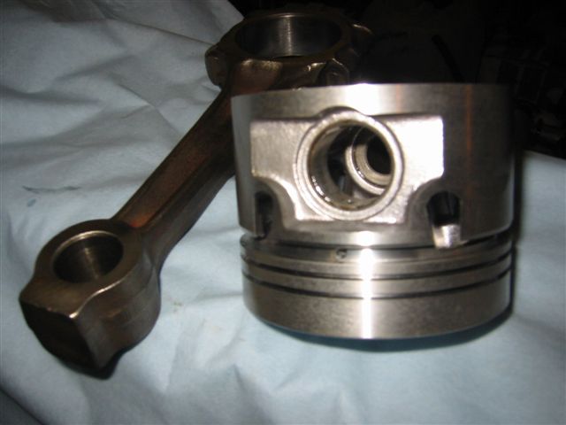 | ...... note the oil sqirt hole in the conrod and the arrow on the piston that faces forward in the engine, so the oil squirt hole is on the OPPOSITE side of the engine to the camshaft. | |