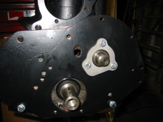 | Front plate secured using the three 5/16 bolts that DO NOT go through the timing chain cover. | |