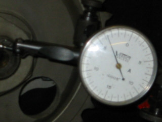 | Camshaft end float measured and adjusted - the boss of the sprocket can be ground down to reduce end float or the font face of the keeper plate ground down to increase end float - in this case the sprocket was ground to reduce end float from 12 thou to 4 thou. | |