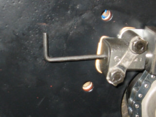 | Knock over the locktab on both bolts and insert an allen key to release the internal locking device by turning it anti clockwise | |