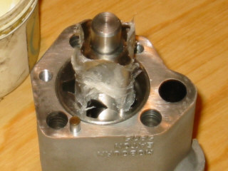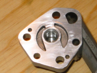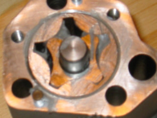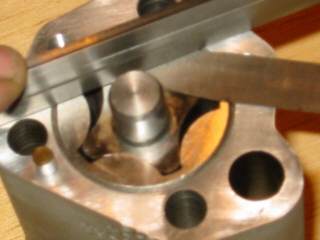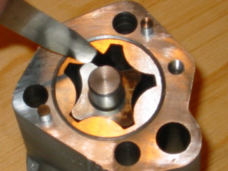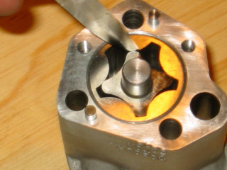 | Checking the clearance of the new outer rotor in the upper body using a feeler gauge - this must not exceed 10 thou - here it is only 4 thou.... | |