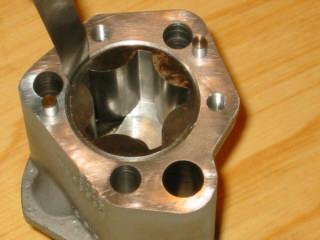 | This circular scoring of the lower body is common - it is caused by bits of steel swarf caught in the bottom of the pump which are dragged round by the rotor | |