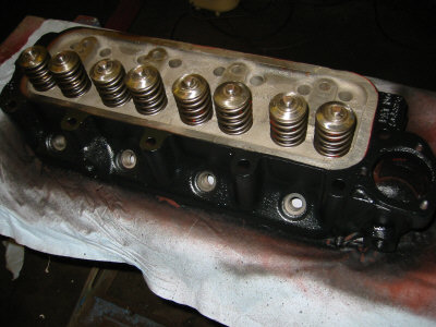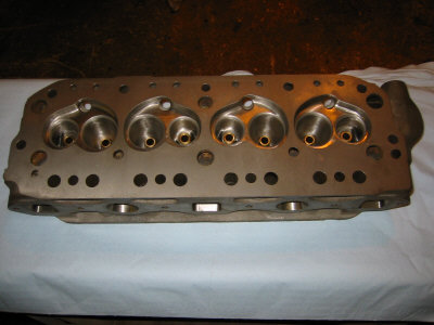 | The bare head - this one is a Peter Burgess stage 2 head using the early casting - 12H1326, the original 1.56 inch inlet valve seats have been opened up to take the later 1.625 inch inlet valves. The exhaust valves are standard. | |
