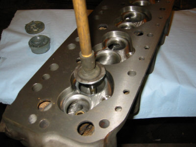 | .... and the inner spring seats are fitted over the guides - this head is having double valve springs fitted | |
